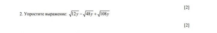 √12y - √48y + √108y = √4×3y - √16×3y +√36×3y = 2√3y - 4√3y + 6√3y = 4√3y