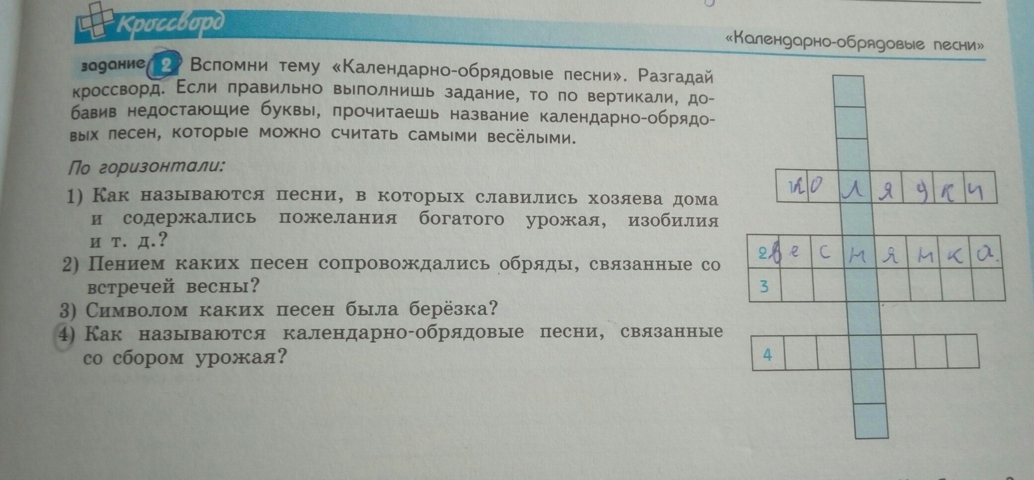 По вертикали: масленичные (песни)