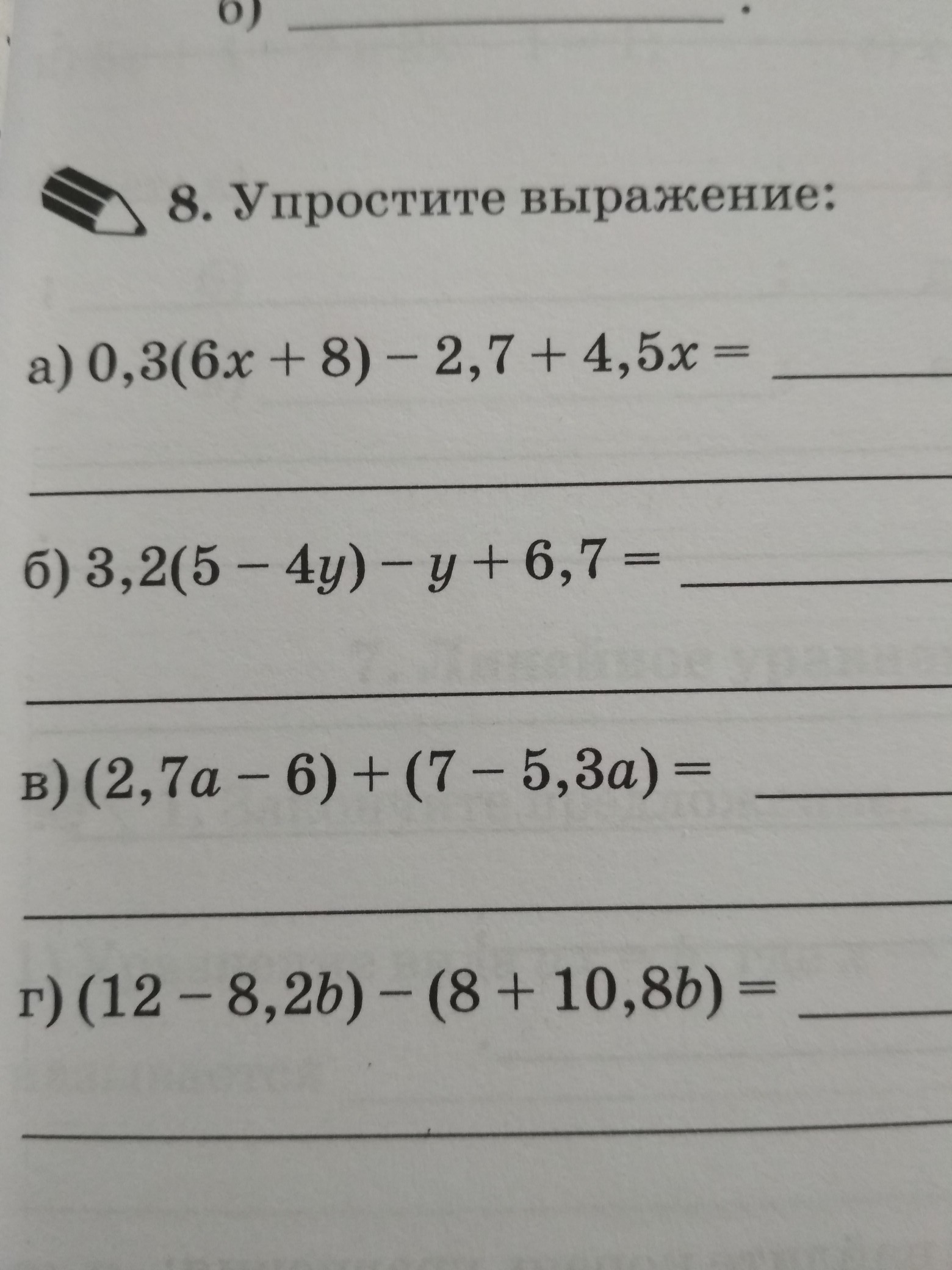 (2.7а-6)+(7-5.3а)=2.7а-6+7-5.3а=2.7а-5.3а-6+7=2.6а+1