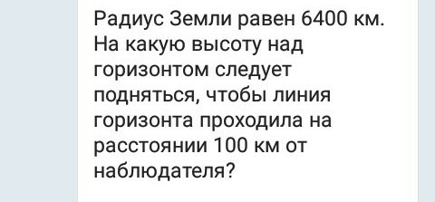 Линия наблюдения горизонта перпендикулярна радиусу Земли.
