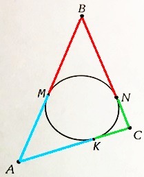 Отрезки касательных, проведенных из одной точки, равны. Обозначим точки касания AB - M, AC - K.