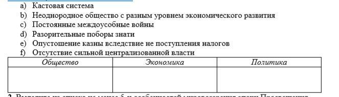 Укажите особенности социально-экономического и политического развития Индии, которые способствовали колониальной экспансии Англии в эту страну. Ответы впишите в соответствующие столбцы таблицы.