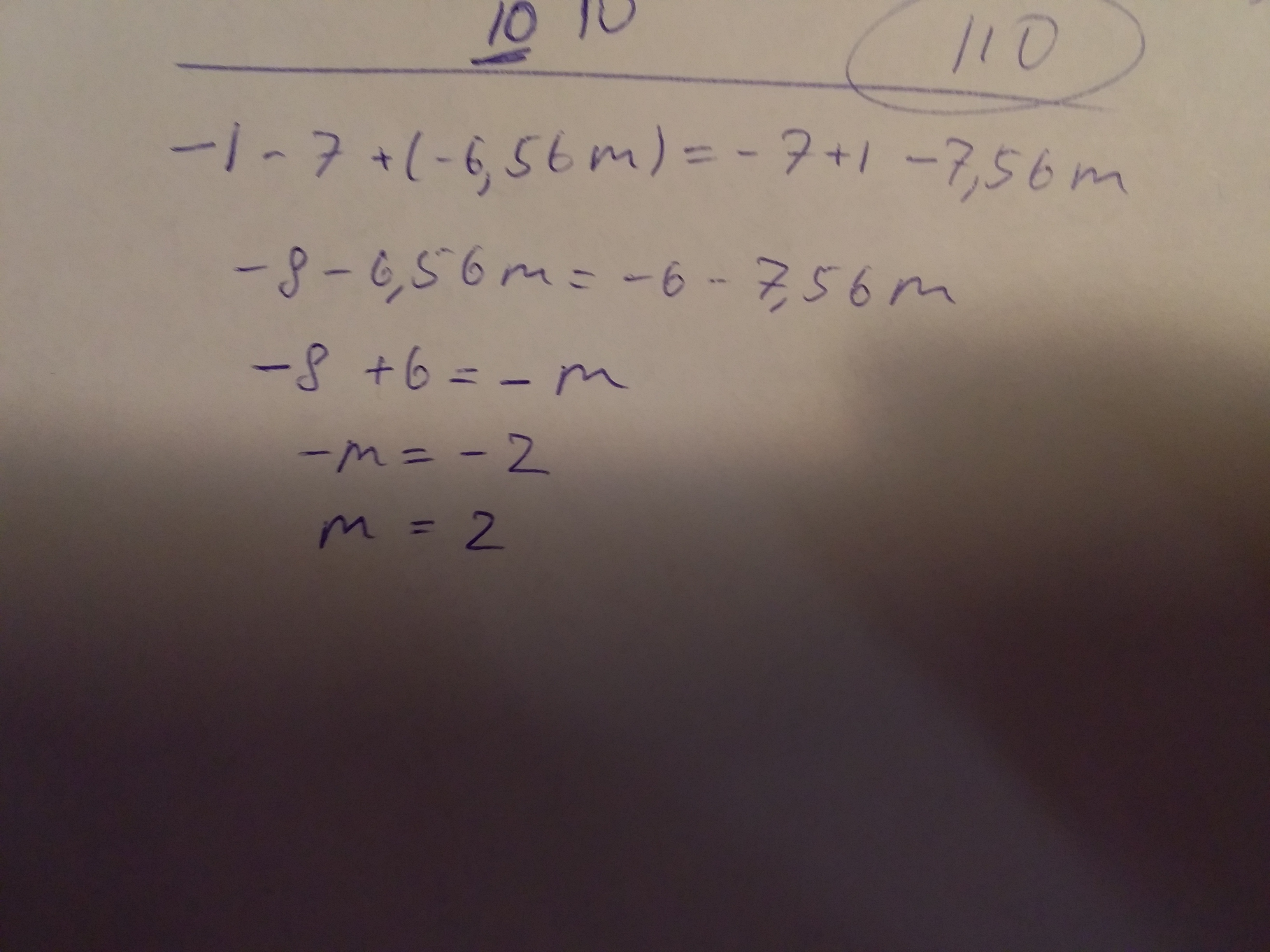 -6,56m + 7,56m = -7 + 1 + 1 + 7