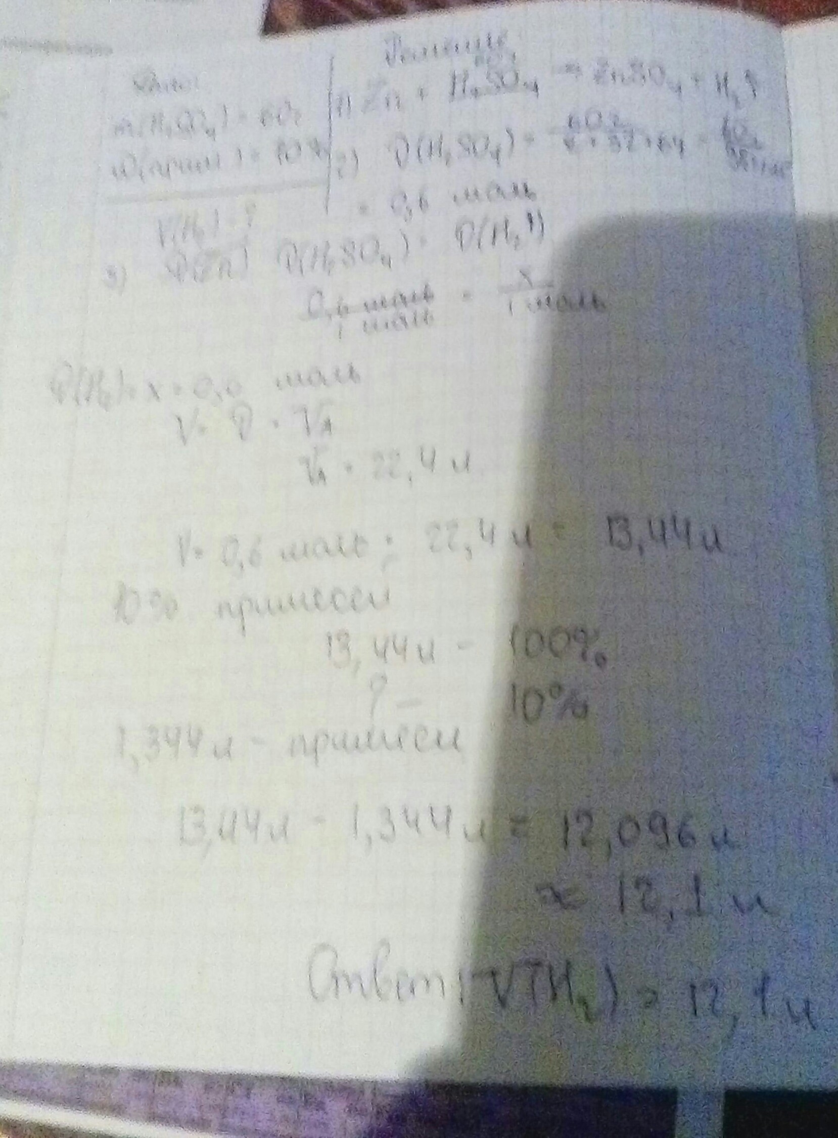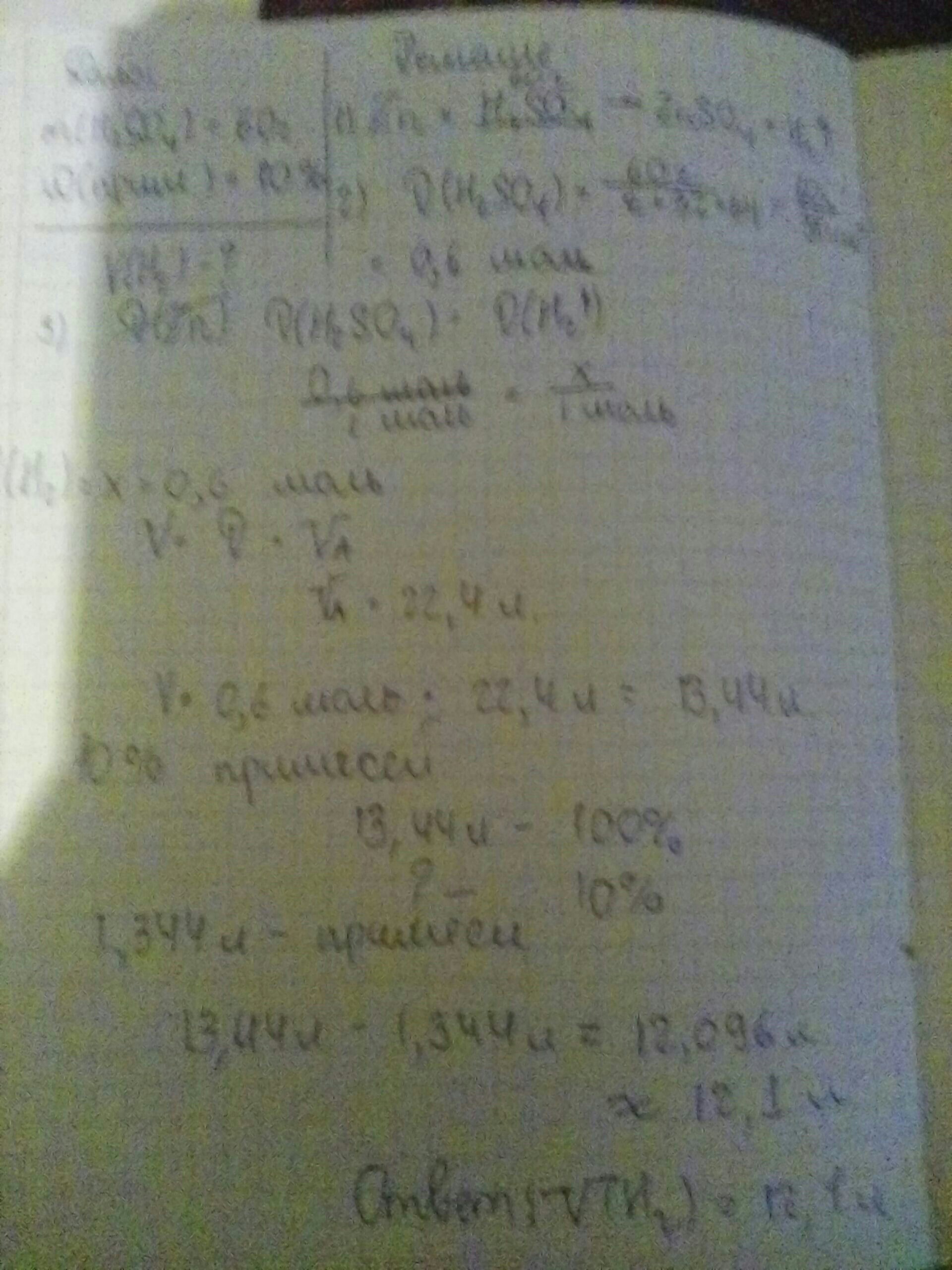Смотри найди кол-во вещества для Н2SO4 и для Zn решаем задачу по недостатку далее находим водород по формуле и постоянной Авагадро и отнимаем примеси.Тебе решить?надеюсь,видно