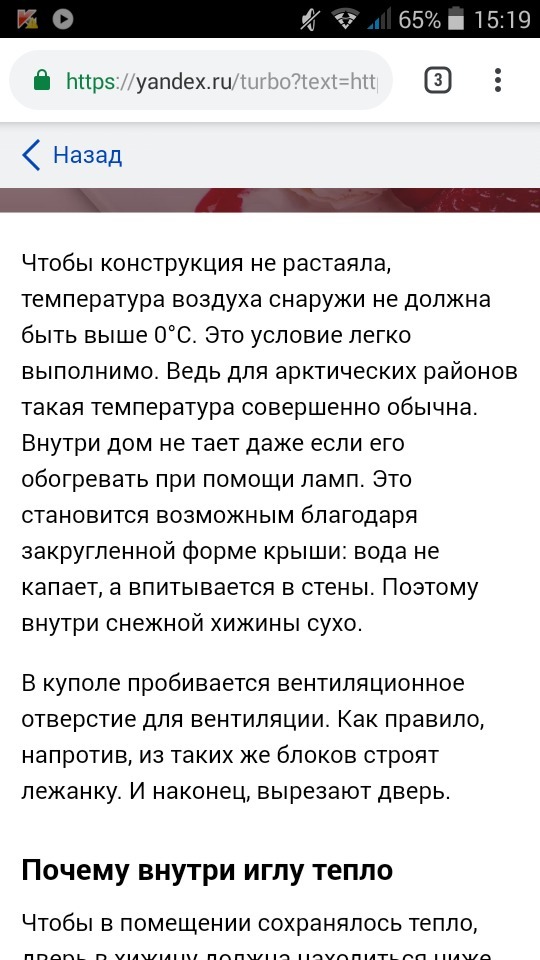 Снег сам по себе плотный, а как мы знаем дома строят из льда. Щели между льдинами забивают обычным снегом, таким образом получается изоляция. Ветер не проходит и резкие похолодания не так чувствуются внутри.