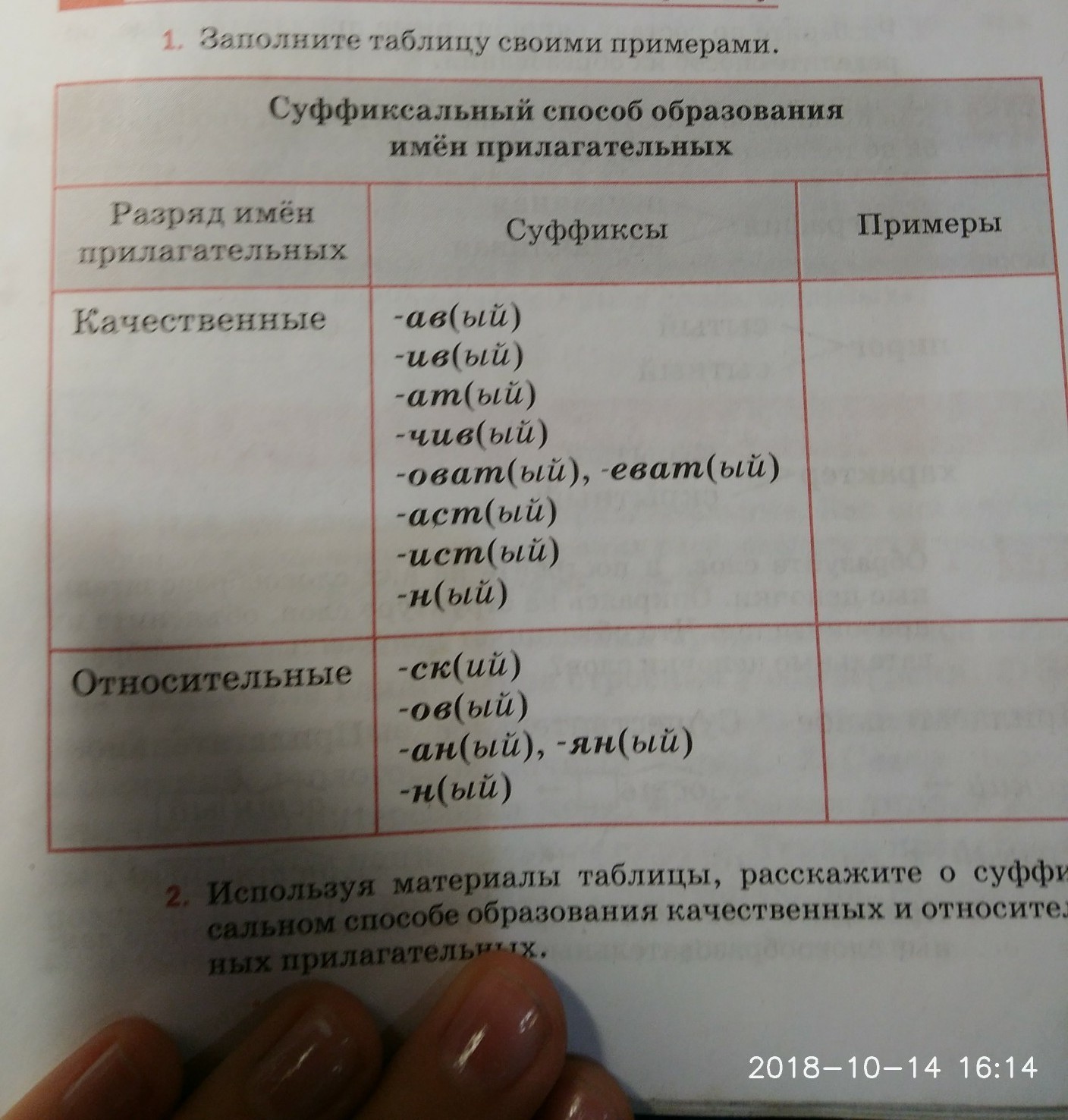 суффиксальный способ образования имен прилагательных. Нужно заполнить таблицу. Помогите пожалуйста