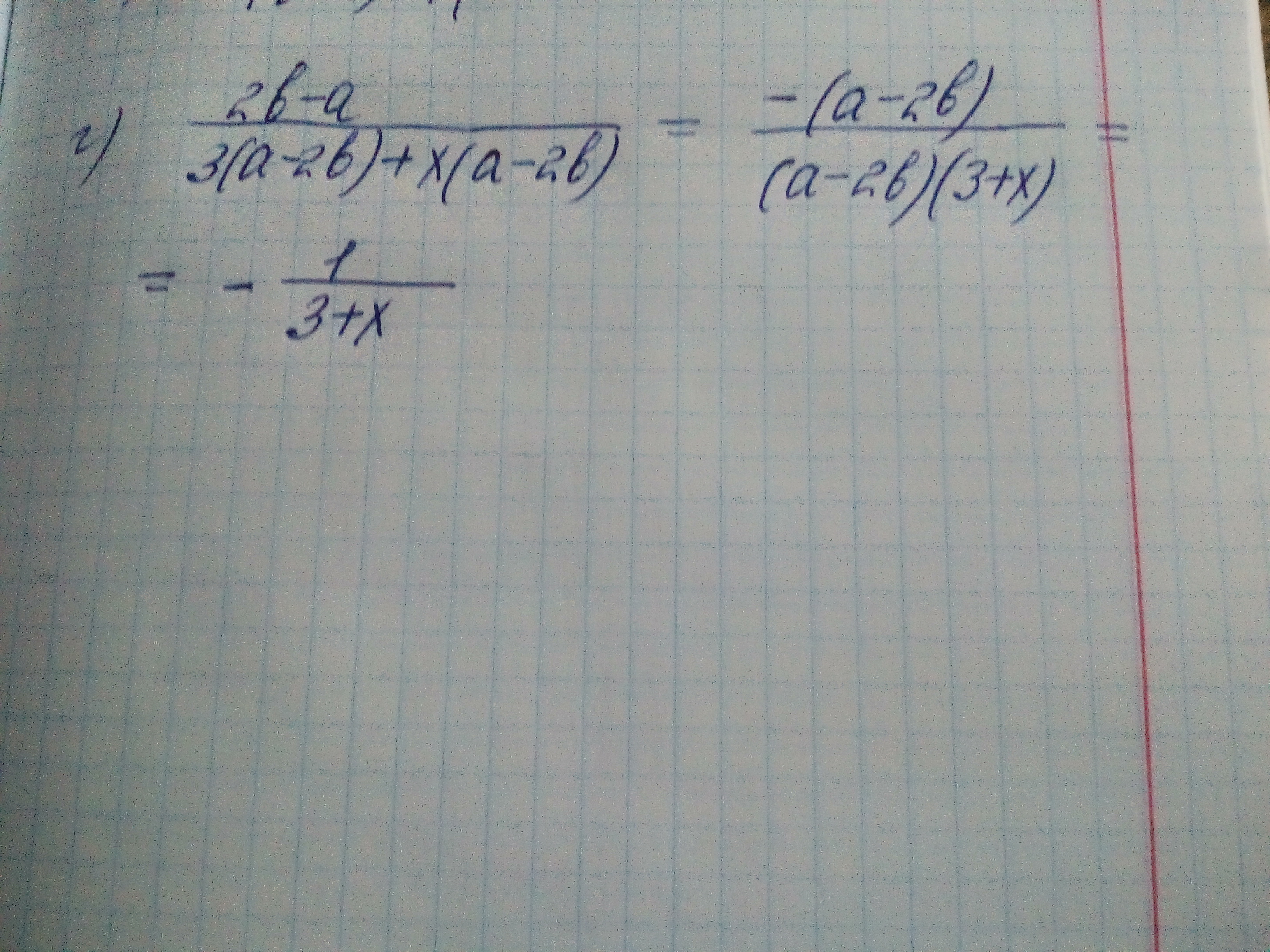 В знаменателе стоит общий множитель (а-2в). Он выносится за скобки. А затем числитель и знаменатель сокращаются на (а-2в). Более полного решения нет.