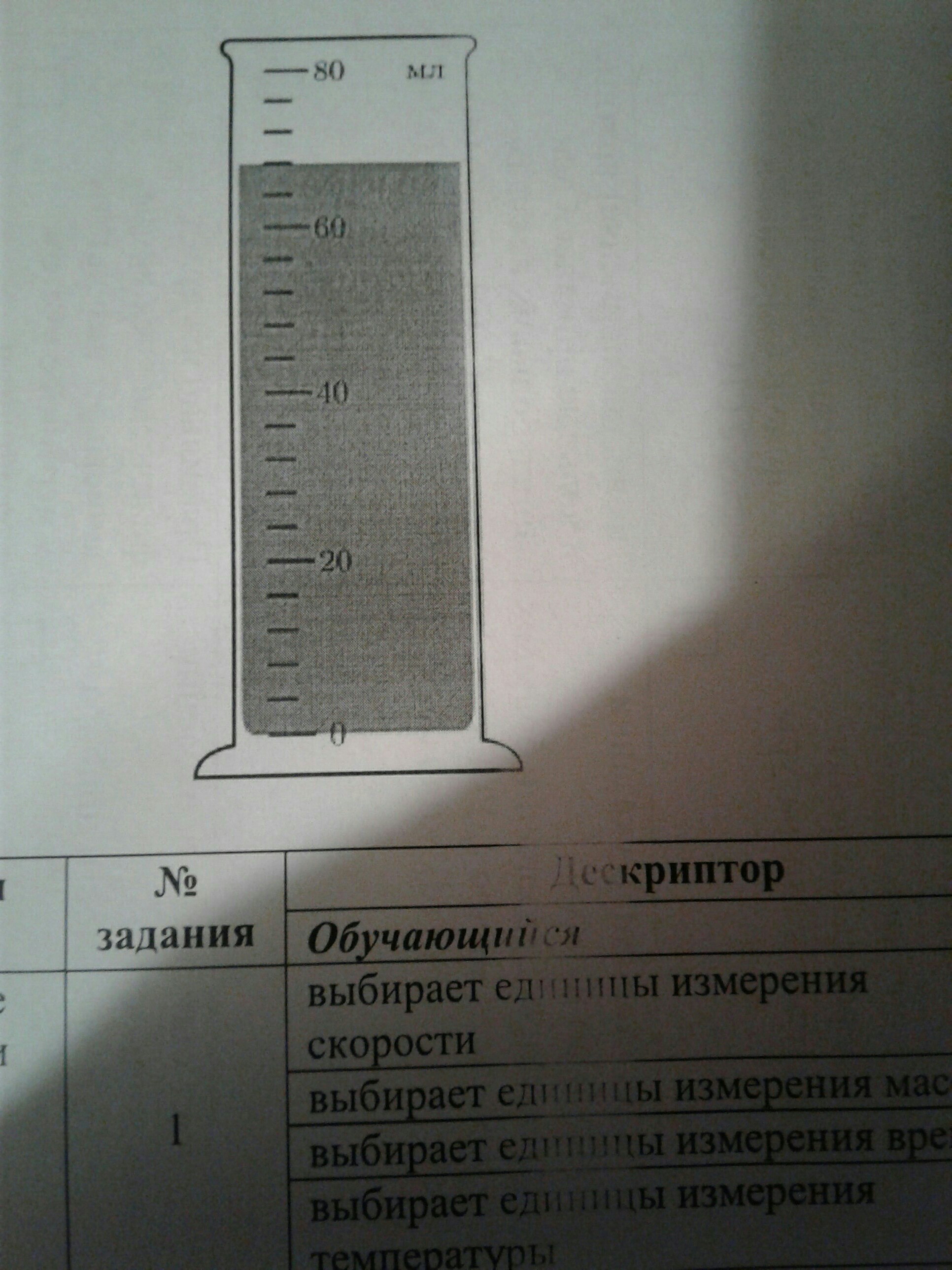 определите и запишите объем жидкости в мензурке с учётом погрешности изображоной на рисунке V=______+- ____мл