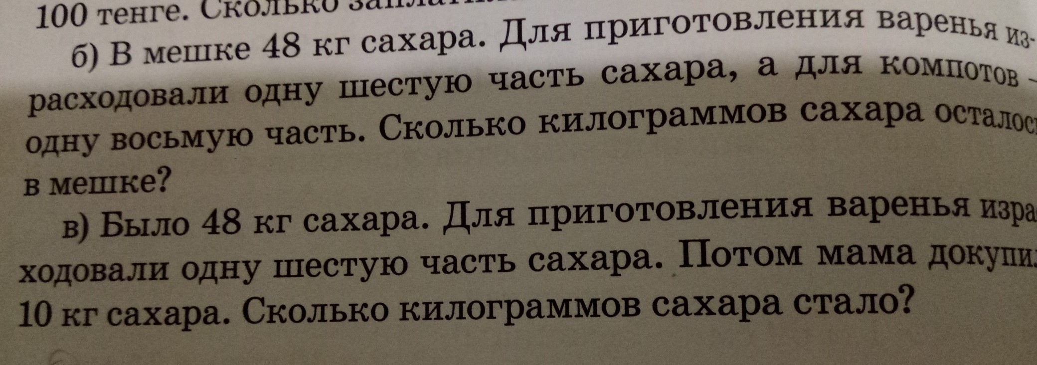 Мама купила 10 кг узнаём когда сахар взяли на варенья стало 40кг 48-8=40