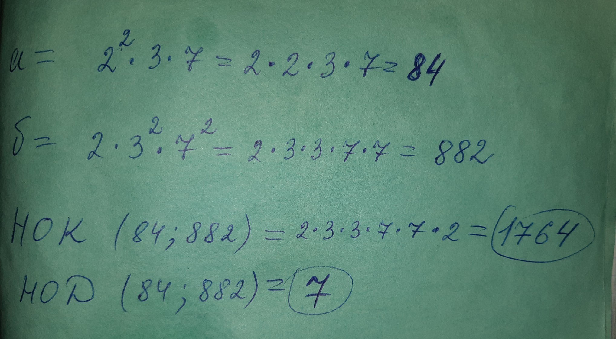 Найдите нод и нок чисел а и б,если а=2 в квадрате •3•7 и б=2•3 в квадрате •7 в квадрате.Награда 30б