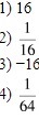 Ответ номер 16. Т.е мы 4 возводим в квадрат.