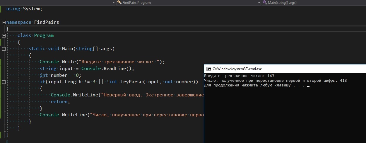 Console.WriteLine("Число, полученное при перестановке первой и второй цифры: {1}{0}{2}", input[0],input[1],input[2]);