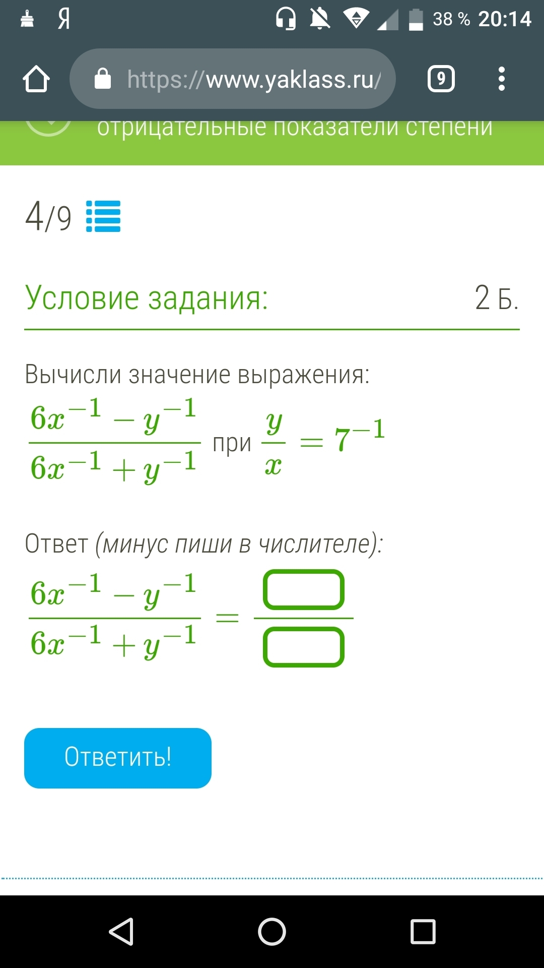 (6*7^(-1)-1)/(6*7^(-1)+1)=(6/7-1)(6/7+1)=
