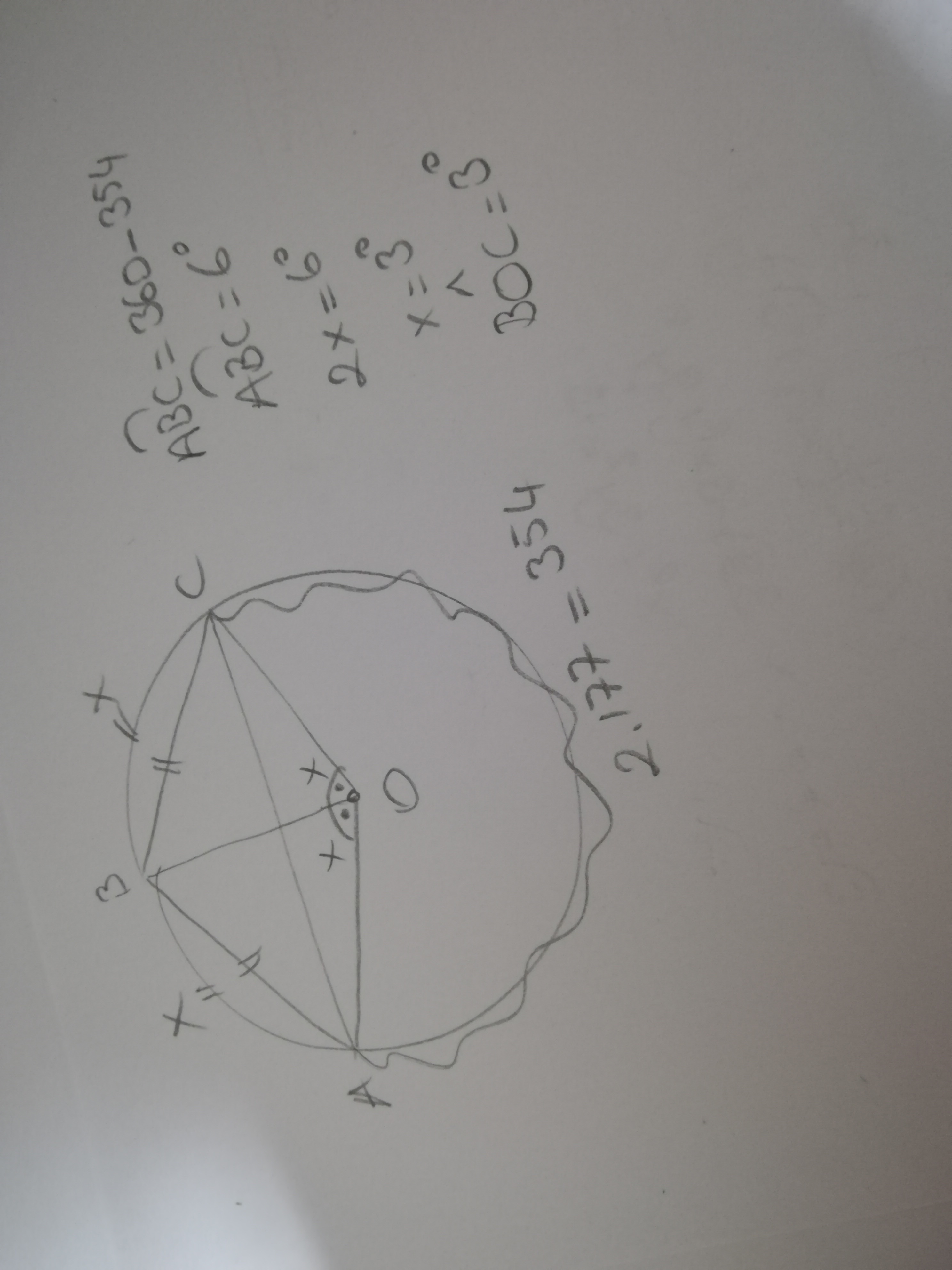 Окружность с центром в точке О описана около равнобедренного треугольника АВС в котором АВ=ВС и угол АВС=177 градусов. Найдите величину угла ВОС. Ответ дайте в градусах.