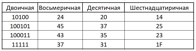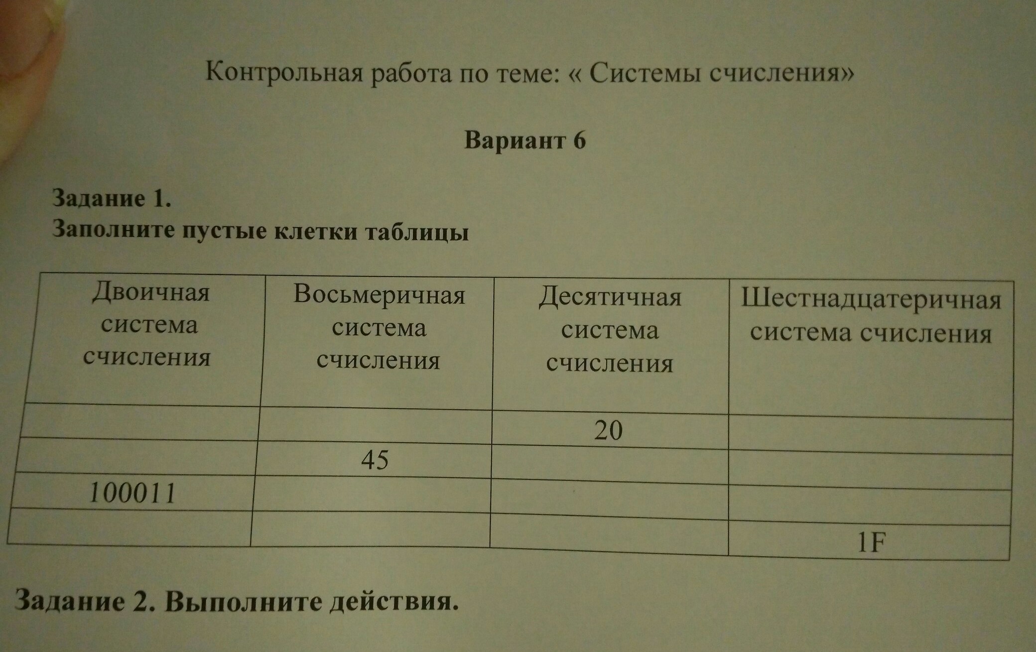 заполните пустые клетки и напишите подробно все расчеты и переводы в другие системы счисления