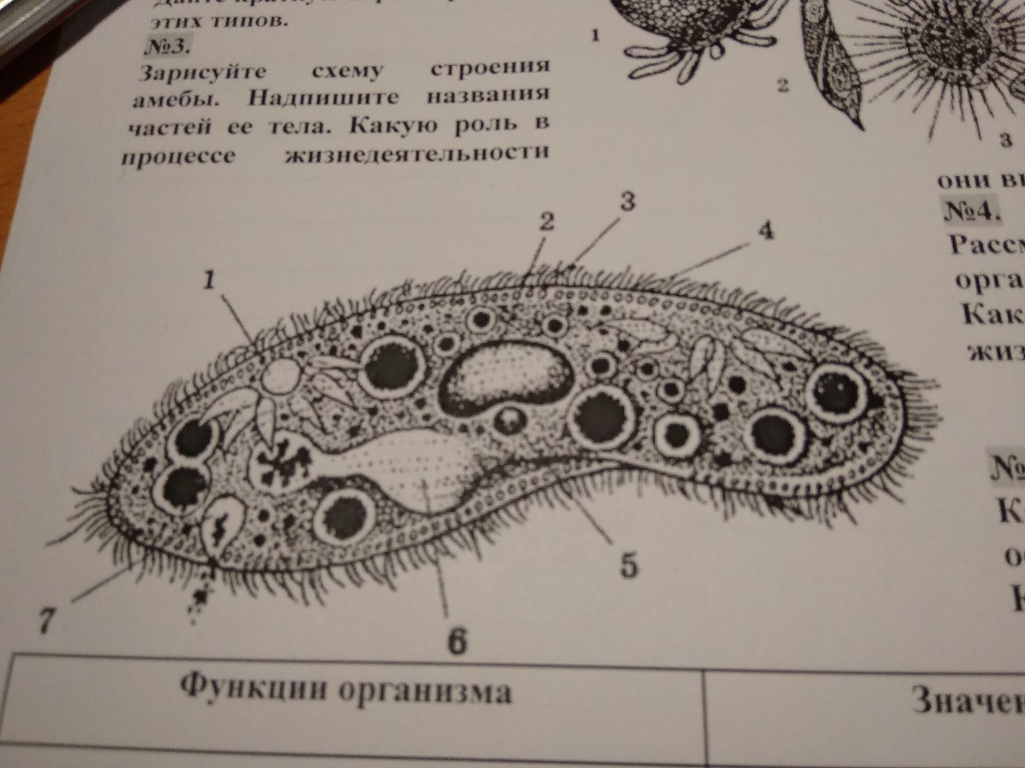 1 - Сократительная вакуоль. Выброс излишков жидкости.