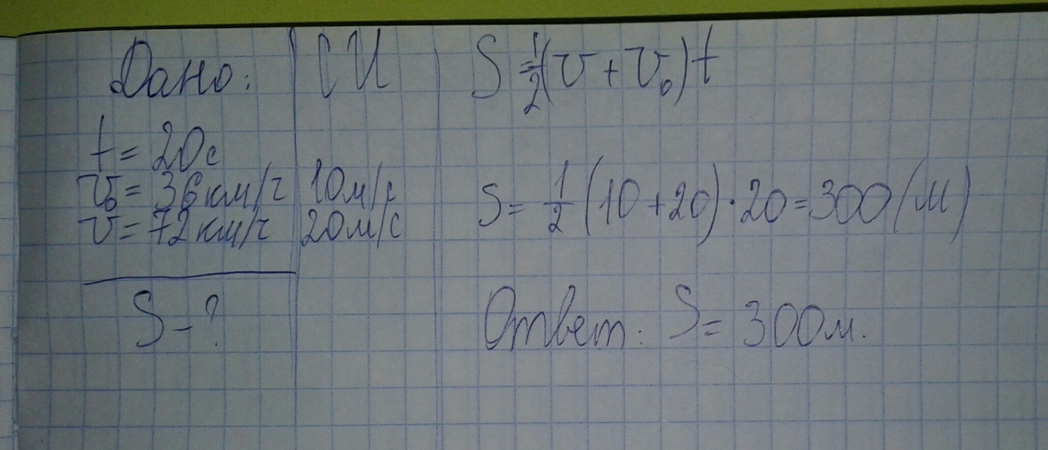какое растояние проехал авто за 20 сек. изменив при этом скорость с 36 км в час до 72 ПЖ СРОЧНО ОТДАМ ВСЕ БАЛЛЫ