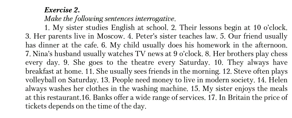Помогите, пожалуйста, срочно.Нужно сделать вопросительными предложениями в Present Simple(do, does)