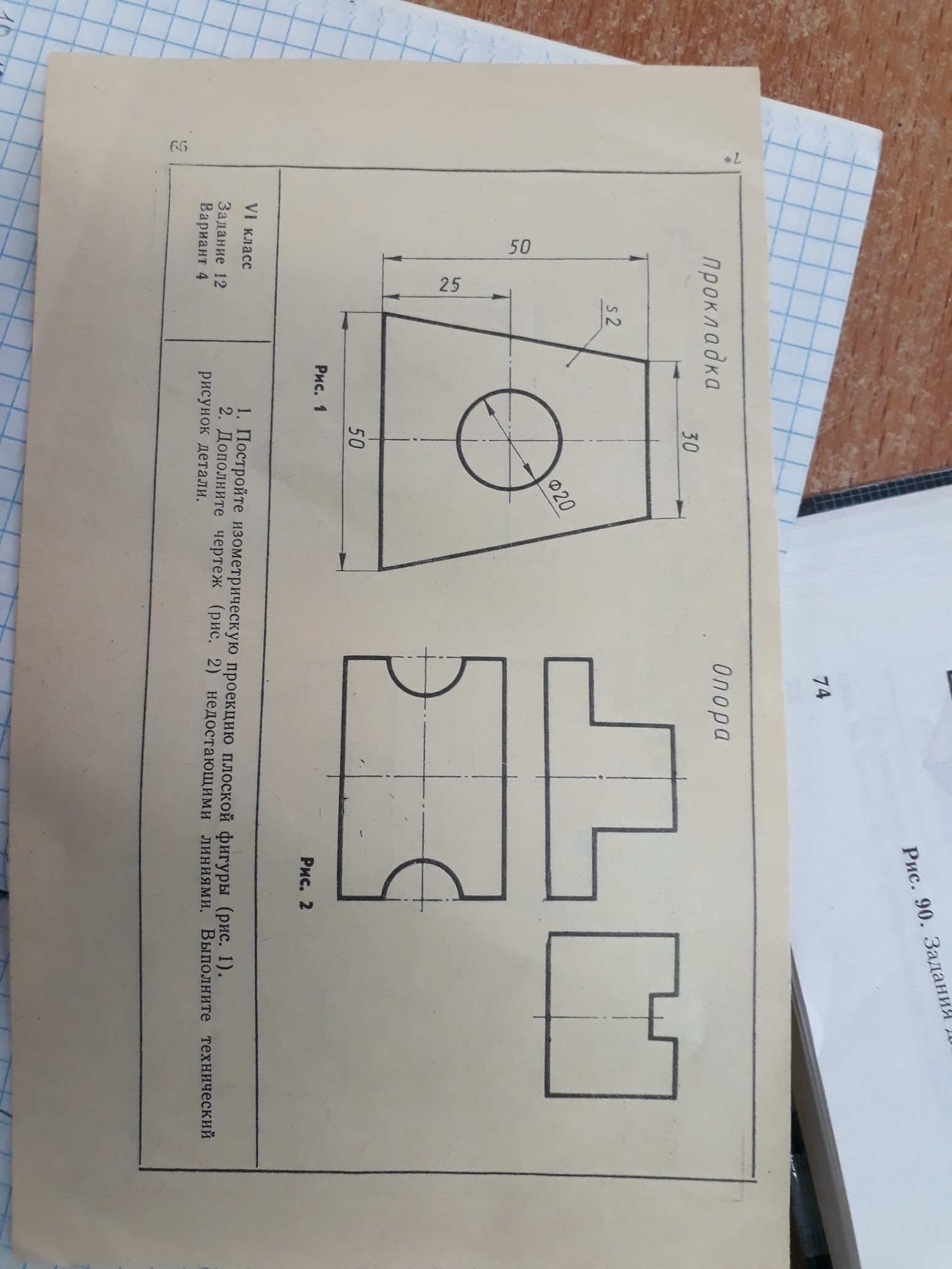 2)Дополните чертёж (рис.2) недостающими линиями.Выполните технический рисунок детали.