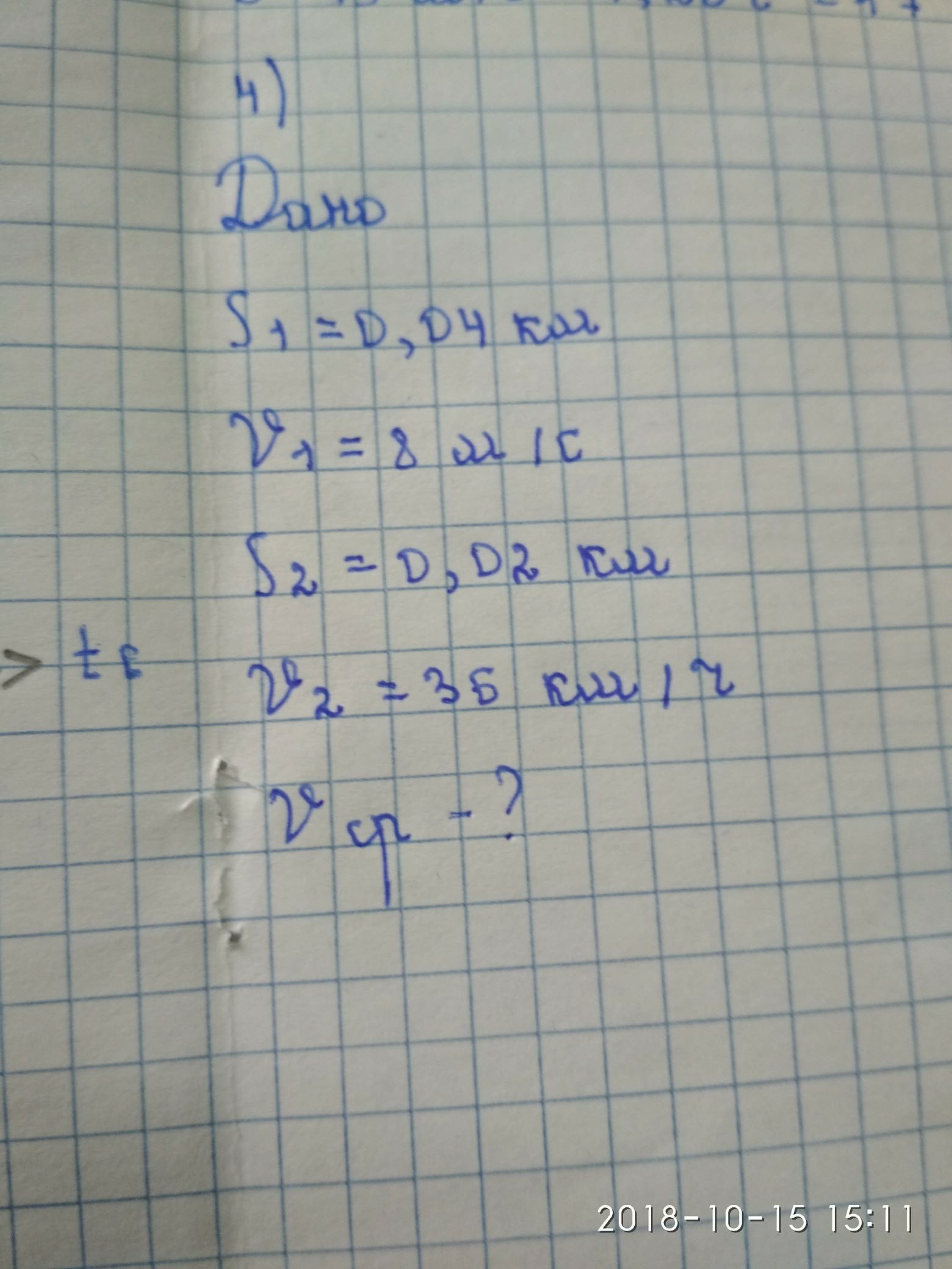 дано S1=400 м V1=8 мс S2=200 м V2=36 кмч=10 мс Vср- ?