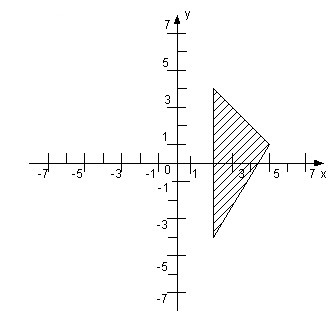 Вычисления логического выражения принадлежности точки с заданными координатами (x, y) заштрихованной области. Значения координат x, y вводятся с клавиатуры с проверкой фактического их восприятия ЭВМ. Программа должна выдавать 1, если точка попадает в область, и 0 — в противном случае.