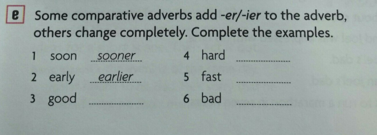 some comparative adverbs add er/ier to the adverb, other change completely. complete the examples