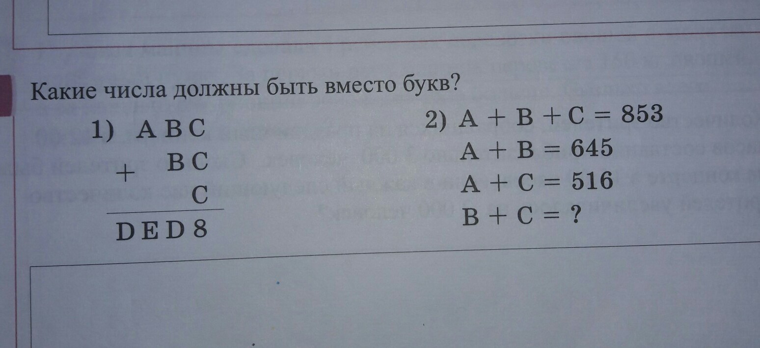 2)А+В+С=853 А+В=645 А+С=516 В+С=? 853-645=208 С,516-208=308А ,645-308=337 в;В337+С208=545