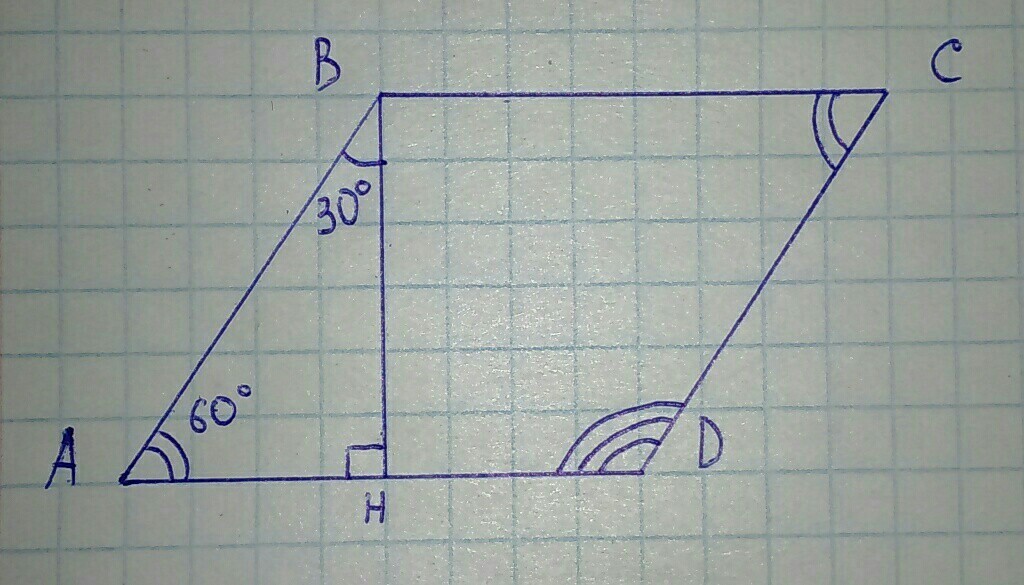 1. Т.к. угол ABH = 30 градусов => угол BAD = 60 градусов.