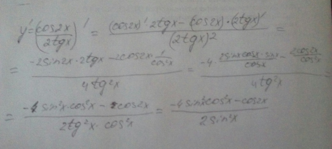 =-2sin2x*2tgx-2cos2x*1/cos^2x ///почему получилось -2sin2x, а не просто -sin2x