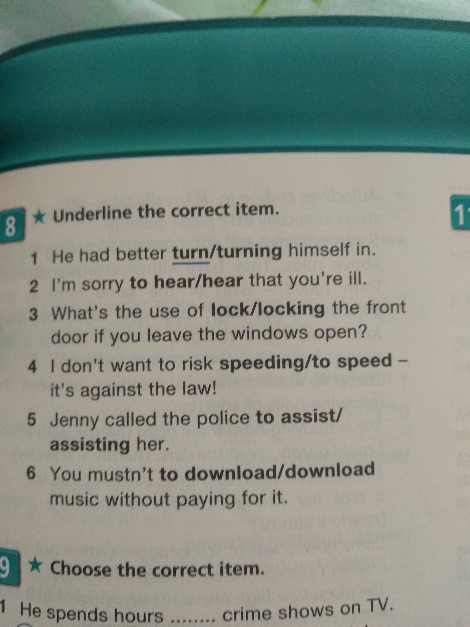 2 - to hear. 3 - locking. 4 - to speed. 5 - to. 6 - download.