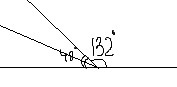 3. Чертишь угол 132°, смежные углы равны 180-132=48°, делишь 48 на 2 получается 24°