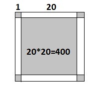 2) а = 21 - 1 = 20 шт - сторона квадрата