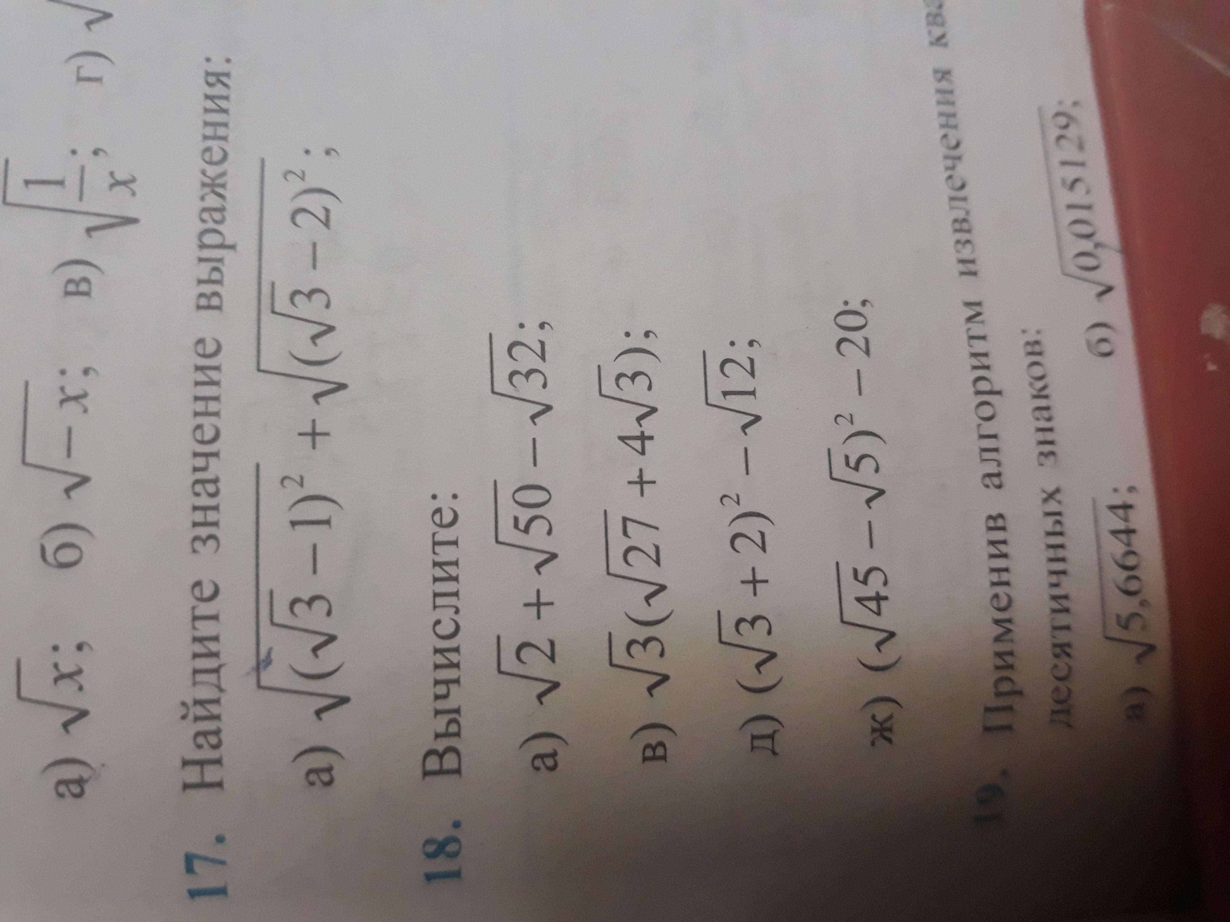 г) (√45 - √5)^2 - 20 = (3√5 - √5)^2 - 20 = (2√5)^2 - 20 = 20 - 20 = 0