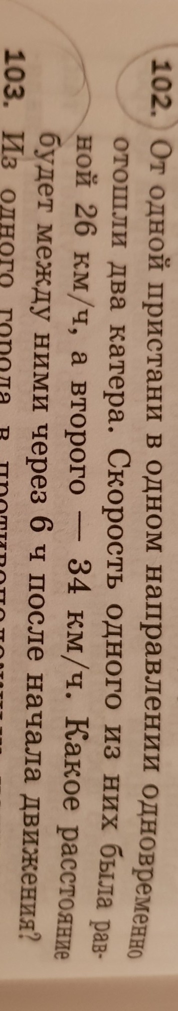 от 1 пристани В одном направлении одновременно отошли два катера Скорость одного из них была равной 26 км ч а второго 34 км ч Какое расстояние будет между ними через 6 часов после начала движения