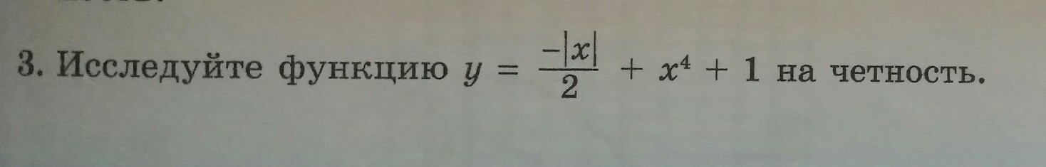 y(-x) = - |-x|/2 + (-x) ^4 + 1 = - |x|/2 + x^4 + 1 = y(x)