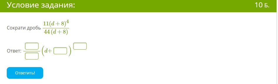 11 и 44 сокращаются внизу (в знаменателе) остаётся 4 д + 8 в четвёртой степени сокращается вверху остаётся д + 8 в третьей степени и того (д+ 8)в третьей степени делённое на 4