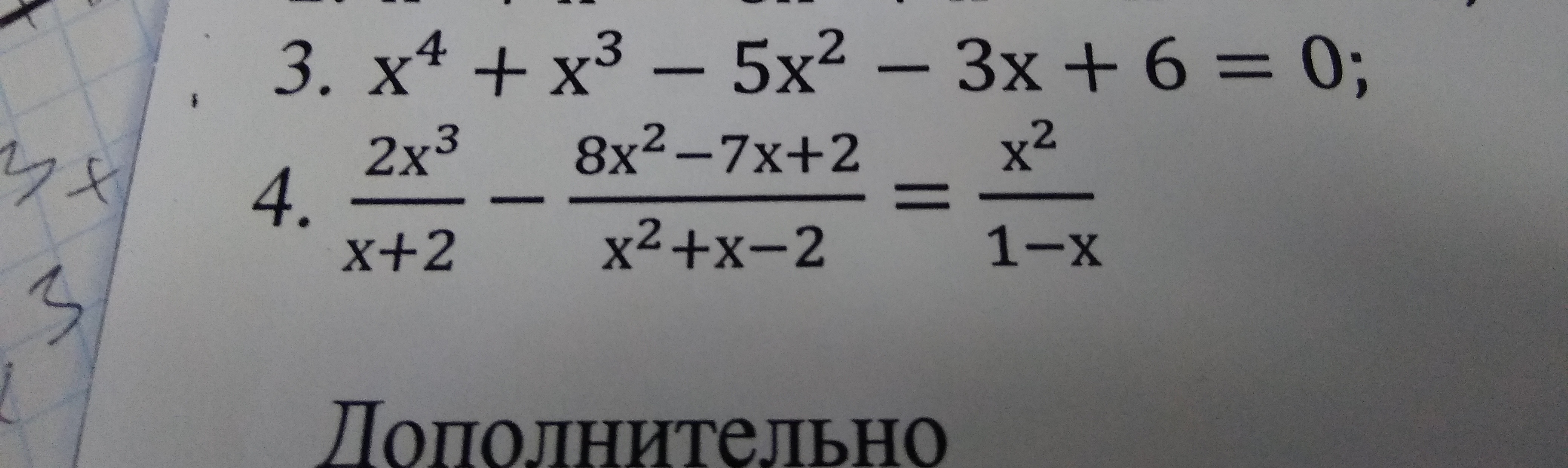 (2x^4-〖2x〗^3-8x^2+7x-2)/((x+2)(x-1)) + x^2/((x -1)) = 0 и все приводим к общему знаменателю