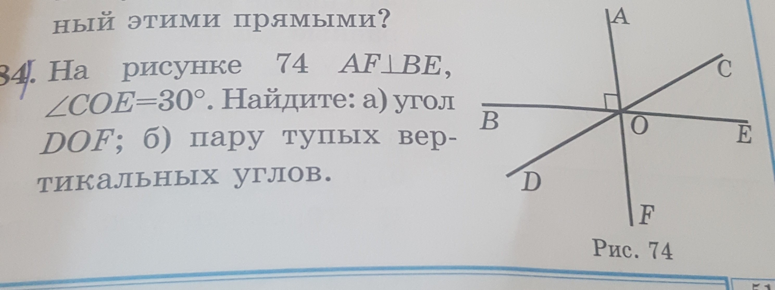 а) угол АОЕ = 90 (т.к. AF перпендикулярно BE)