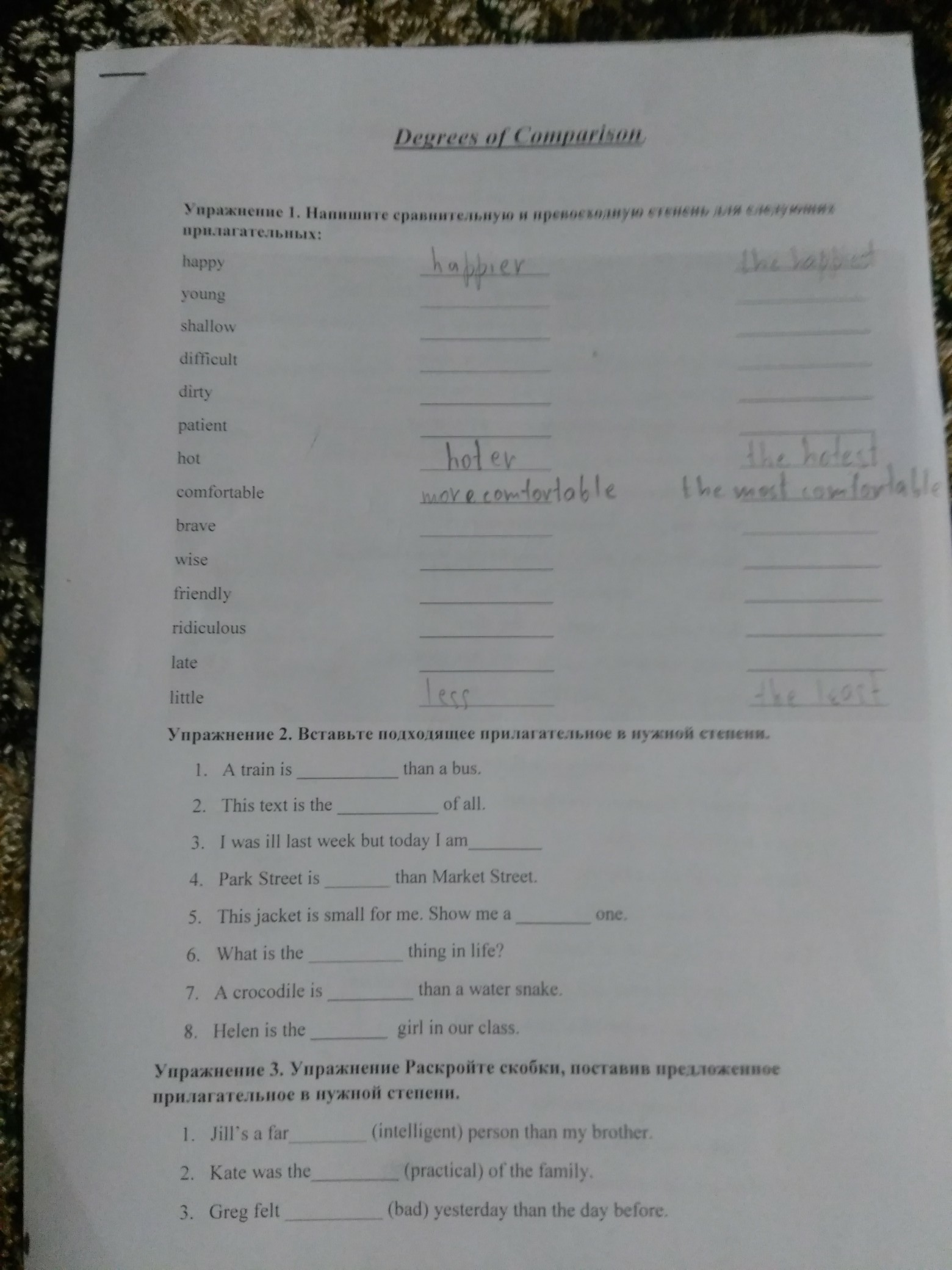 1 ) younger youngest shallower the shallowest more difficult the most difficult dirtier the dirtiest patienter the patientest hotter the hottest braver the bravest wiser the wisest the more ridiculous the most ridiculous later the latest