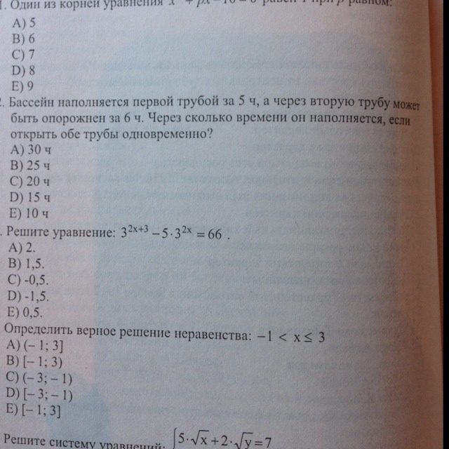 1)У 1 трубы производительность равна 1/5 (объёма бассейна в час). У 2 трубы производительность равна 1/6 (объёма в час).Так как через 1 трубу бассейн наполняется, а через вторую опорожняется, то совместная производительность равна