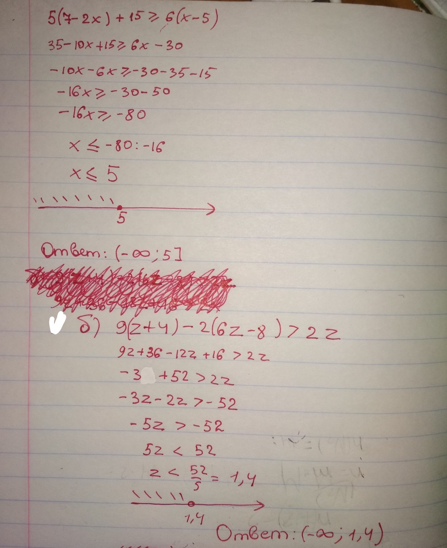 А) 5(7-2х)+15≥6(х-5)