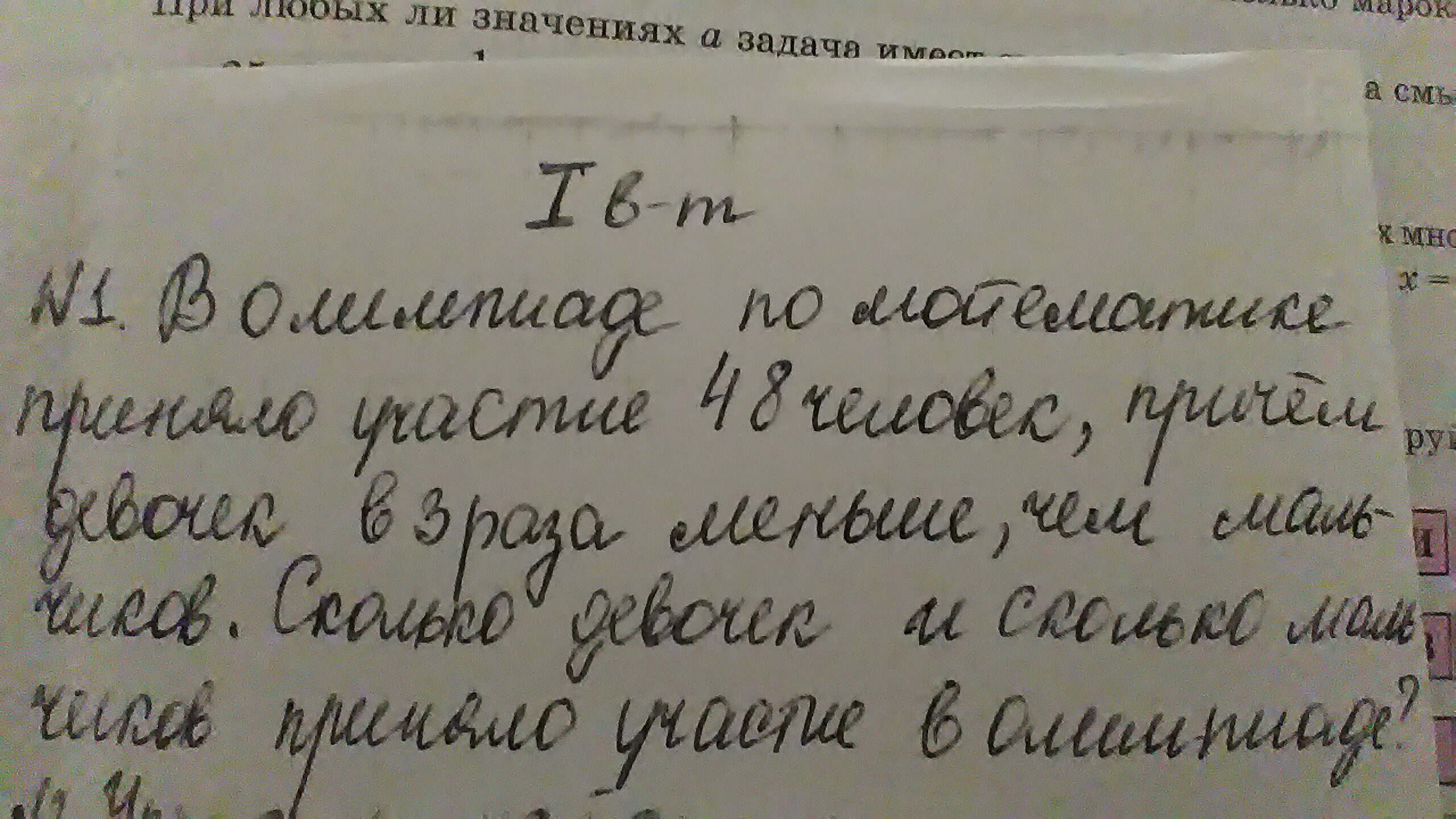 1)48:3=16-девочек принимающих участие в олимпиаде;