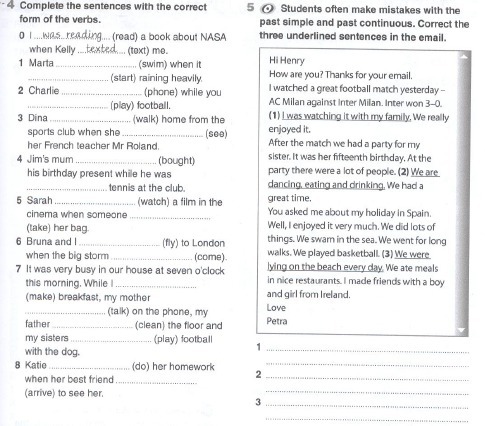 4 Jim's mum bought his birthday present, while he was playing tennis at the club.