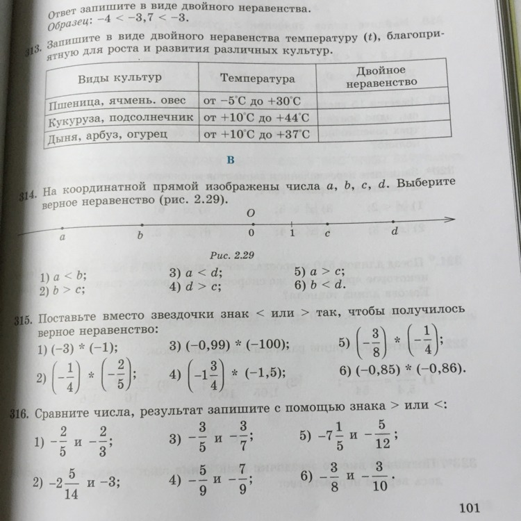 ответы в 315 :1 <,2>,3>, 4>,5 <,6>