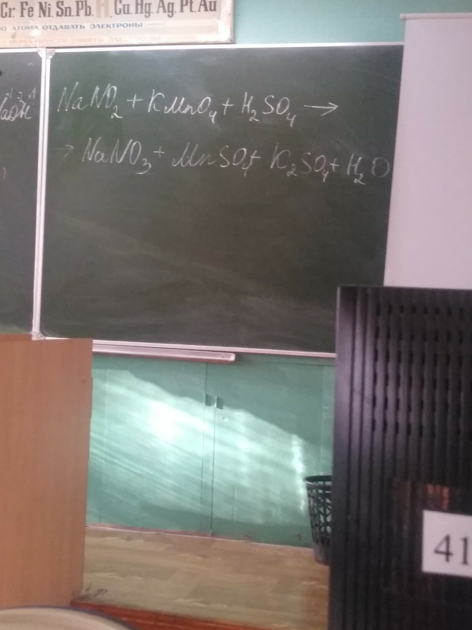 5NaNO2 + 2KMnO4 + 3H2SO4 = 5NaNO3 + 2MnSO4 + K2SO4 + 3H2O