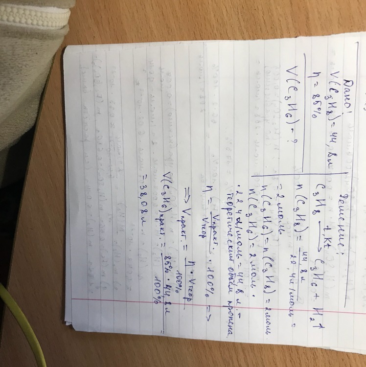 Какой объем пропена получится при каталитическом дегидрировании 44,8 л пропана (н. у.), если выход продукта реакции равен 85%? Срочно