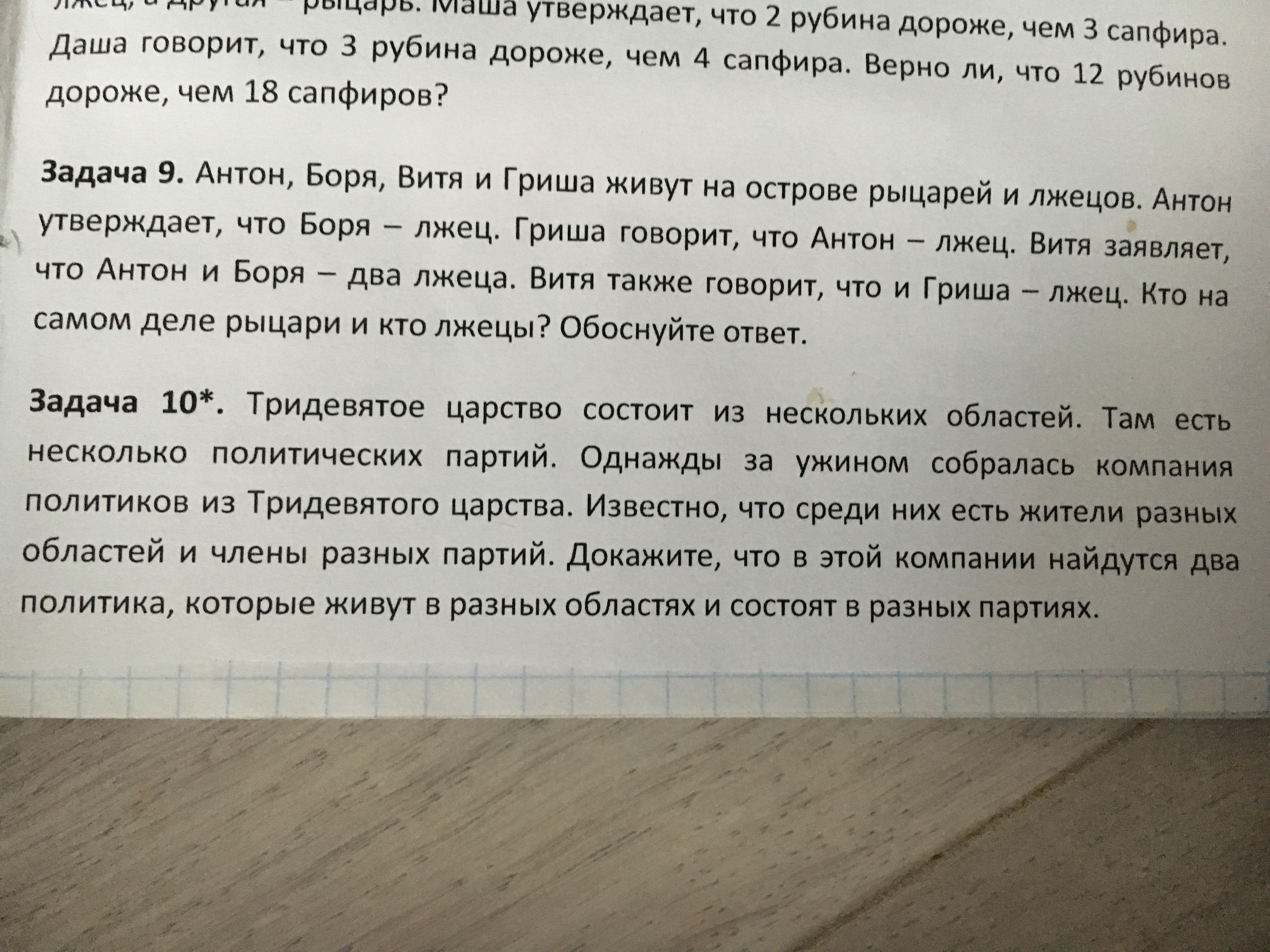Антон ,Боря и гриша лжецы а Витя рыцарь