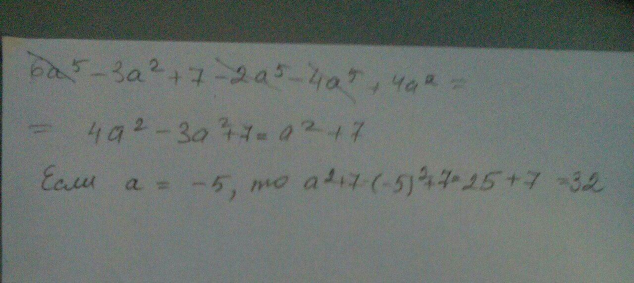 6а^5-3а^2+7-2а^5-4а^5+4а^2