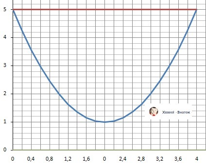 Находим пределы интегрирования - решение ур. 1) a = 4, b = 0.