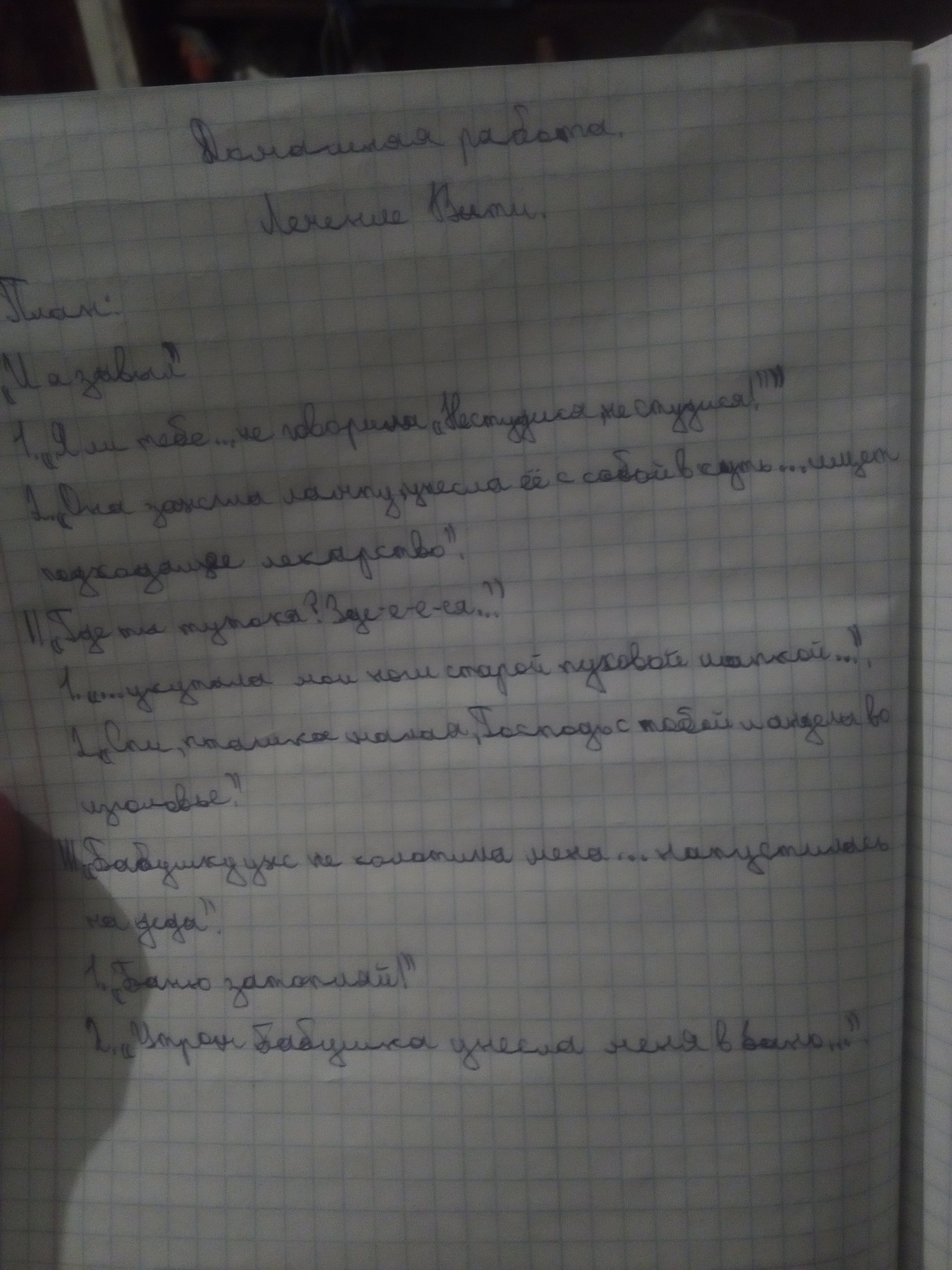 Составьте сложный цитататный план к эпизоду "Лечение Вити" рассказ фотография на которой меня нет